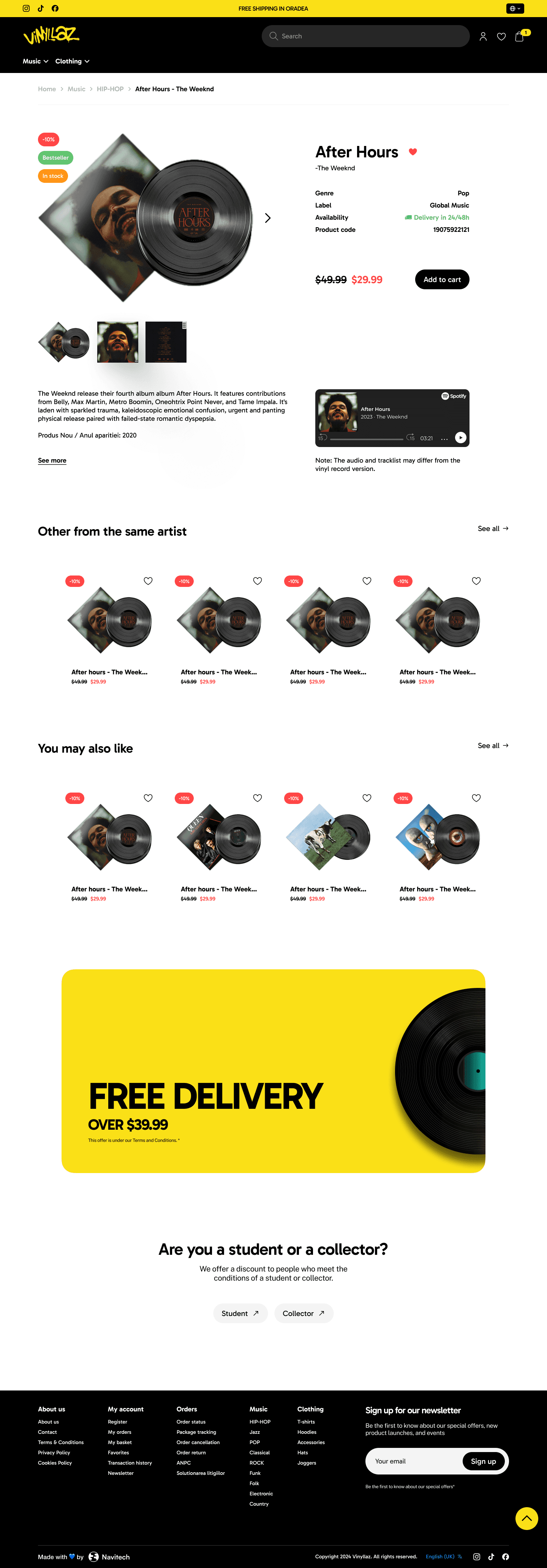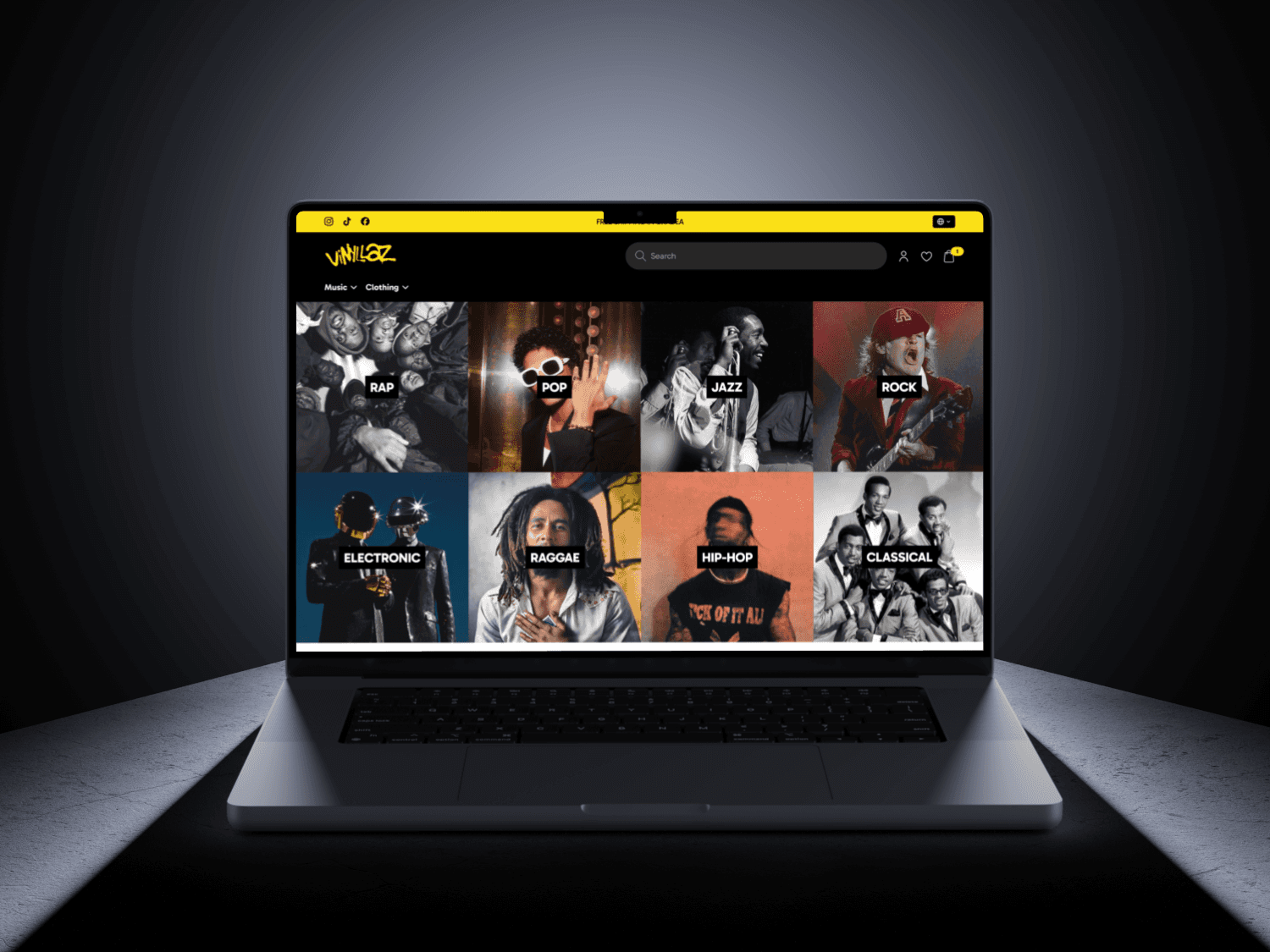 Vinyllaz is a fully custom-developed e-commerce platform dedicated to selling vinyl records online. The platform allows users to browse a large catalog of records, filter by genre and artist, manage their cart, and complete secure online purchases. The admin side includes a complete back-office system for managing products, orders, customers, and inventory.